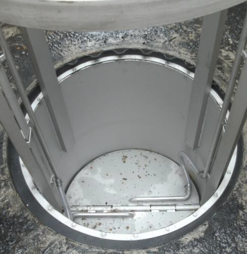 為了清空收集籃,要解開(kāi)壓力軟管,用提升裝置將籃子完全從池子里拉出來(lái),砂礫和碎片保留在籃子里,殘留水通過(guò)收集籃的底部排出。將籃子清空倒入垃圾箱或直接倒入垃圾車(chē)。拉動(dòng)中間的解鎖桿就可以將柵格折疊而打開(kāi),砂礫會(huì)從底部落下。籃子清空以后,旋轉(zhuǎn)柵格,將籃子放回池子里。等重新接上對(duì)壓力耦合,砂礫收集器可以準(zhǔn)備工作了。