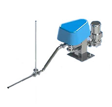 雨水調(diào)蓄池智能噴射器系統(tǒng)包括:雨水調(diào)蓄池智能噴射器本體、液位計(jì)、高清攝像頭、控制系統(tǒng)組成。其中雨水調(diào)蓄池智能噴射器本體主要由旋轉(zhuǎn)驅(qū)動器、固定支撐座、水泵、旋轉(zhuǎn)接頭、出水管、氣液混合腔、噴管、進(jìn)氣管等組成,設(shè)備主要運(yùn)用文丘里原理作為設(shè)計(jì)依據(jù)。